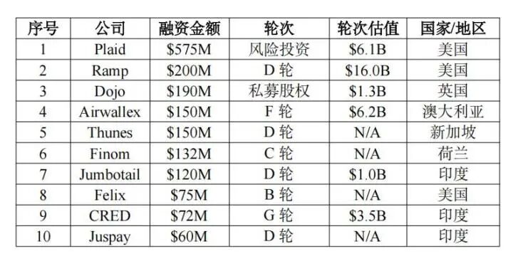 2025年上半年金融科技行业报告总结 编者按:2025年7月,消费者与商业情报(CB Insights)和全球金融科技网络(GFTN)先后发布了《2025年第二季度全球金融科技发展报告》(State of Fintech Q2 2025)和《2025年上半年金融科技投融资报告》(FinTech Investments 1H 2025)。报告中系统梳理了全球金融科技(FinTech)投融资、并购和首次公开募股动向,比对了支付、财富科技、区块链等赛道及地区走势。报告指出,全球金融科技行业投融资活动呈现周期性复苏与结构性调整并行的特征。经历2022年至2023年低位运行阶段后,融资总额总体企稳回升,部分领域和地区实现较快增长,但复苏分布不均,差异化特征显著,并愈发体现由“数量”向“质量”转变的趋势。 01 全球趋势 2025年上半年,全球金融科技投资呈现出复苏迹象但恢复并不均衡。各市场融资总额约为660亿美元,同比增长61%。然而,这一增幅主要归功于个别超大交易。从地区分布看,资金进一步向头部市场集中:美国、英国、印度等主要国家融资额同比上升,而中国、新加坡、香港和印尼等市场则出现大幅下滑。若不计超大单笔交易,美国同期增幅约为15%,英国约为27%,而中国则下跌了83%。这表明繁荣背后,各地区走势分化显著。 融资数量方面,2025年第二季度全球金融科技领域仍延续低频大额的特征。一方面,单季融资总额继续保持在100亿美元以上的相对高位,为2023年以来首次连续两个季度突破这一水平。另一方面,全球风险投资活动整体尚未恢复至疫情前高峰水平:上半年全球VC(风险投资)基金募资规模仅约488亿美元,不足2024年全年的26%。投资者更加谨慎,资金更偏好头部项目。超大规模融资中,美国企业占据65%的笔数和近70%的资金份额。相比之下,其他地区项目融资难度依然较大,质量重于数量的趋势明显。 值得关注的是,企业服务(B2B)类金融科技正成为市场焦点。2025年第二季度,支付和数字银行等领域最大笔融资中,有60%来自B2B金融科技公司。与此同时,退出活动有所升温:金融科技领域并购交易在第二季度增至205起,延续了自2024年底以来的活跃态势。这显示尽管一级市场融资谨慎,头部企业的并购整合与上市步伐在加快,投资人更加注重盈利能力和成熟度,高质量龙头项目更易获得资本青睐。 综上,上半年全球金融科技投融资出现局部反弹。但整体环境仍然充满挑战:地区间冷热不均,投资更加倾向于优质项目而非广撒网式扩张。这一趋势反映出疫情后的资本正在重新评估风险,聚焦盈利和基本面,金融科技行业正处于由量转质的调整阶段。 02 关键领域分析 2025年上半年,金融科技核心赛道呈现出不同的发展态势。支付、数字银行、财富科技、保险科技等领域各有亮点和挑战,反映出金融科技投融资正在向细分领域纵深发展。 (一)支付 支付领域融资总量低位企稳,大型交易集中于头部企业。2025年第二季度全球支付行业融资约为15亿美元,延续了自2022年以来的低位水平。然而,本季度诞生了全球金融科技领域最大几笔融资,凸显支付赛道头部效应明显。其中,美国Plaid(金融科技基础设施服务商)完成5.75亿美元融资,成为季度内金额最大的单笔交易。紧随其后的是Ramp(企业支出管理平台)的2亿美元D轮融资,以及英国Dojo(商户支付服务提供商)获得的1.9亿美元投资。这几笔交易均由提供企业支付解决方案的B2B公司获得,表明投资者对支付基础设施和企业级支付服务前景的信心。此外,新加坡跨境支付企业Thunes完成1.5亿美元D轮融资,带动该公司跻身独角兽行列,也反映出支付行业的区域性龙头具备吸引资本的能力。总体而言,在交易数量减少的情况下,大额融资占比上升,领先支付企业更易获得资金青睐,中小支付创业公司的融资环境仍然相对谨慎。 表1 2025年第二季度支付领域十大股权融资案例 (二)数字银行 数字银行与金融服务领域投资有所回暖,基础设施类项目备受关注。2025年第二季度,全球数字银行及相关金融服务领域融资总额约为17亿美元,比上一季度有一定增长。本季度该领域出现多笔百亿美元估值公司的后续融资,显示头部数字金融平台依然具有融资能力。值得注意的是,金融基础设施和嵌入式金融服务成为亮点:美国开放银行接口平台Plaid的巨额融资(见上文)即归属此领域。与此同时,数字身份认证服务商Persona完成2亿美元D轮融资,投后估值达到20亿美元,旨在加强金融机构的合规和风控能力。跨境金融服务方面,澳大利亚的Airwallex(空中云汇,跨境支付及商业金融平台)在第二季度获得1.5亿美元F轮融资,投后估值达62亿美元,继续推进全球扩张。消费端数字银行业务同样有所进展:美国数字理财应用Stash获得1.46亿美元H轮融资,用于丰富其数字银行产品线;欧洲中小企业数字银行服务商Finom融资1.32亿美元,支持其业务增长。这些案例显示,数字银行赛道正在从野蛮生长转向精耕细作,提供底层技术支持和垂直领域服务的企业获得更多关注和资金支持。本季度数字银行相关交易仍以美国为主导,但欧美以外市场也开始出现有影响力的融资事件,说明数字银行模式正向全球多元化发展。 表2 2025年第二季度数字银行领域十大股权融资案例 (三)财富科技 财富科技领域融资强势反弹,创近三年新高。2025年第二季度,财富科技板块融资总额达到19亿美元,较第一季度的0.7亿美元大幅增长近三倍。这一金额也创下自2022年第二季度以来的季度新高。本季度该