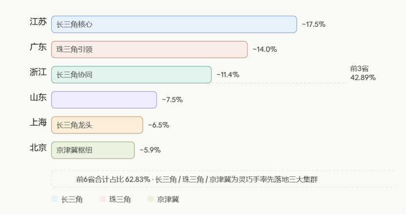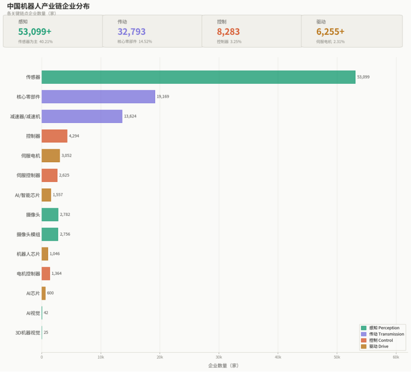 隐形冠军 第95期 | 2026年3月30日 Hidden Champions, Weekly Issue | No. 95, March 30, 2026 The Issue is now available on Zhejiang Daily's Tide News App under the【Monday Night 8 PM】column. Click "Read More" at the end of the article to access the full content. 图源:AI生成 导读 INTRODUCTION 机器人会走,已经不新鲜;能在水槽边把碗一只只放稳,才更接近真正“能用”。Figure AI这一轮更新,又把灵巧手推回台前。比起整手有多炫,真正拉开差距的,从来不是外形,而是藏在手指里的电机、传动、控制和感知。 A robot that walks is no longer news. One that can place dishes steadily by the sink feels much closer to being truly useful. Figure AI's latest update has pushed dexterous hands back into focus. More than flashy full-hand demos, the real gap is created by what sits inside the fingers: motors, transmission, control, and sensing. 2026年初,Figure AI 为 Figure 03 进行了关键更新。灵巧手搭载 Helix 02 AI 控制栈,使得在完全自主状态下把碗碟逐一摆进洗碗机。它能区分陶瓷与玻璃的材质差异,以低至3 克的力度精准拿捏杯沿,全程丝滑、零干预。 驱动它的是VLA架构:看见、理解、动手,感知与执行在同一条链路上实时流转。 为什么是”手”?腿决定机器人能否到达,手决定它能否完成。Figure 03 选择用一个普通家庭的水槽边来标记这道分水岭:灵巧手,正在从机器人的软肋,变成它迈向实用化的真正入场券。 机器人自主摆放餐具 (基于 Helix 02 系统) 图源:Figure AI官网 01 市场升温:灵巧手为什么成为新焦点 The Rise of Dexterous Hands: Why the Market is Heating Up 灵巧手不是一个零件,而是一套系统的总和——驱动、传动、控制、触觉、视觉、热管理,缺一则手废。它比普通夹爪更接近“操作能力的缩影”,被人形机器人、工业抓取、危险作业、医疗康复四大场景同时盯上。对整机厂而言,灵巧手已不只是采购项,而是产品能否进入复杂场景的试金石。 但真正的差距藏在指节深处。与其逐项对比零散参数,不如抓住一个核心维度:驱动系统的成熟度。灵巧手表面上是末端执行器,实质上比拼的是微型驱动、精密传动、控制算法和感知反馈的系统能力。 从代表性产品看,海外厂商已建立起较高门槛。英国 Shadow Robot 的灵巧手用20个电机驱动24个自由度,多关节协同控制较为成熟。国内方面,兆威将17个电机压入掌心,灵巧智能 DexHand021 的寿命突破了百万次。整体来看,国内在结构集成和寿命指标上已有明显进步,但差距仍集中在两点:一是单位体积内的驱动输出能力,二是多关节长时间运行下的协同稳定性。 Shadow Robot的Dexterous Hand (全球科研和遥操作场景中的标杆产品之一) 图源: Shadow Robot官网 这两项差距主要为底层微型驱动能力。第一是功率密度,它决定了灵巧手能否在有限空间内实现更高自由度;第二是可靠性与一致性,决定产品能否从样机走向批量交付;第三是热管理与寿命,决定系统在长时间运行下能否保持稳定。 海外方案之所以能同时兼顾高自由度、小体积和长寿命,靠的正是在这三个层面上的综合积累。 不过,差距之外也有机会。海外灵巧手方案价格高、定制化深,难以直接平移到大规模应用场景;中国企业的优势在于成本与工程化。电机、减速器、丝杠、力传感器等国内产业链已有较强配套基础,在响应速度、迭代周期和制造成本上更具竞争力。产业链上市公司2024年合计营收约2万亿元,中位数增速5.4%,但前5家占比超过五成,头部高度集中,细分赛道的企业仍有巨大空间。 但空间能否转化为实际份额,取决于企业能否把局部能力转化为系统能力、把样机能力转化为量产能力。微型驱动、高端控制等短板一旦补齐,灵巧手就有望从高端平台变成“买得起、用得起、改得动”的标准化部件。 02 专精特新企业画像:谁在灵巧手产业链上卡位 | Who Holds the Key? Strategic Power Players in the Dexterous Hand Ecosystem 目前,我国的机器人产业链底盘远比想象中大:据专栏数据,截至当前,上链企业超过13万家,其中约四分之一已获省级专精特新认定,国家级专精特新“小巨人”企业与制造业单项冠军近8千余家、上市企业逾千家,分层结构清晰。 机器人产业链企业分层结构 图源:专栏绘制整理 区域上,江苏、广东、浙江三省集中了超过四成的专精特新企业,加上山东、上海、北京,前六省合计覆盖近三分之二的产业资源。长三角、珠三角、京津冀,是灵巧手最可能率先规模落地的主要区域。 机器人产业链前六省专精特新企业占比 图源:专栏整理绘制 竞争正在从“做出Demo”转向“掌握关键部件”。在灵巧手整机端,兆威、雷赛、速腾聚创等企业已分别切入;驱动端,德昌、捷昌、伟创、拓邦覆盖四类技术路径;传动端,恒立、震裕、五洲新春、大业等企业深耕多年;感知端,安培龙和奥比中光则分别锚定力觉与视觉。 这一竞争格局的背后,说明灵巧手本质上并非单一产品赛道,而是一条贯穿“控制—驱动—传动—感知”的复合型产业链。也正因此,当前入局者并不局限于机器人本体厂商,而是横跨制造业、科技服务、信息技术等多个行业门类,其中制造业企业占据半壁江山,科技服务与信息技术企业紧随其后。 机器人产业链分层拆解:关键链点与专精特新企业数量 图源:专栏整理绘制 进一步拆解产业链可以看到,机器人产业链在传感器和核心零部件环节配套相对充足,但在高端控制、专用芯片、3D视觉等关键环节仍较为薄弱。整体来看,赛道